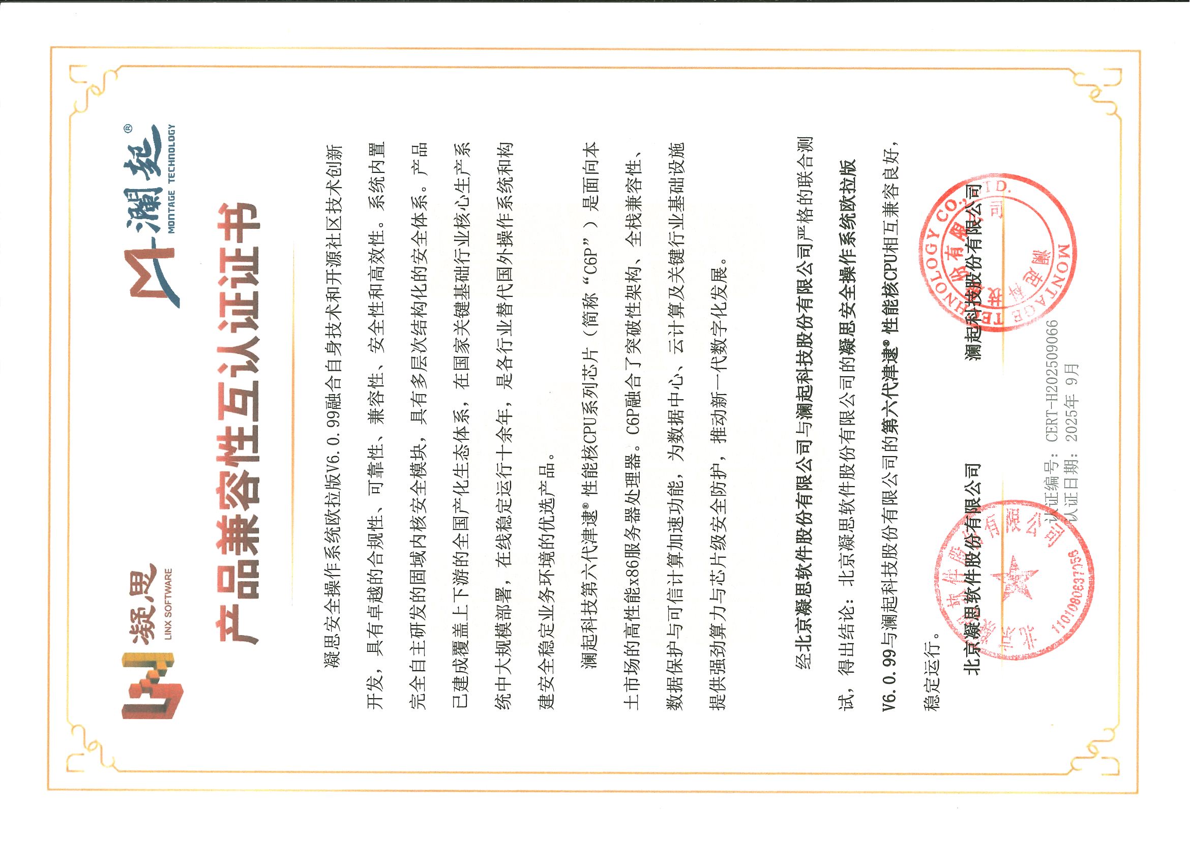 第六代津逮®性能核CPU - 北京凝思安全操作系统 V6.0.99