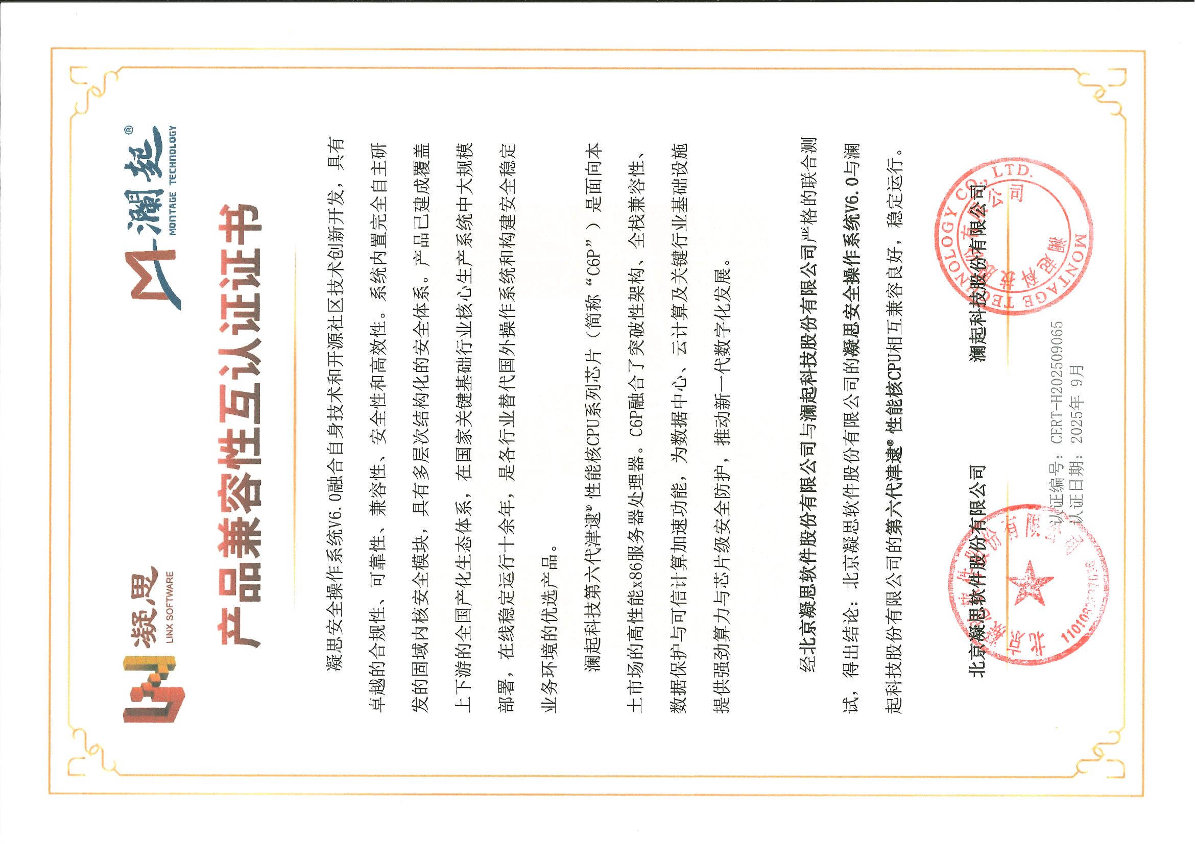 第六代津逮®性效核CPU - 北京凝思安全操作系统 V6.0
