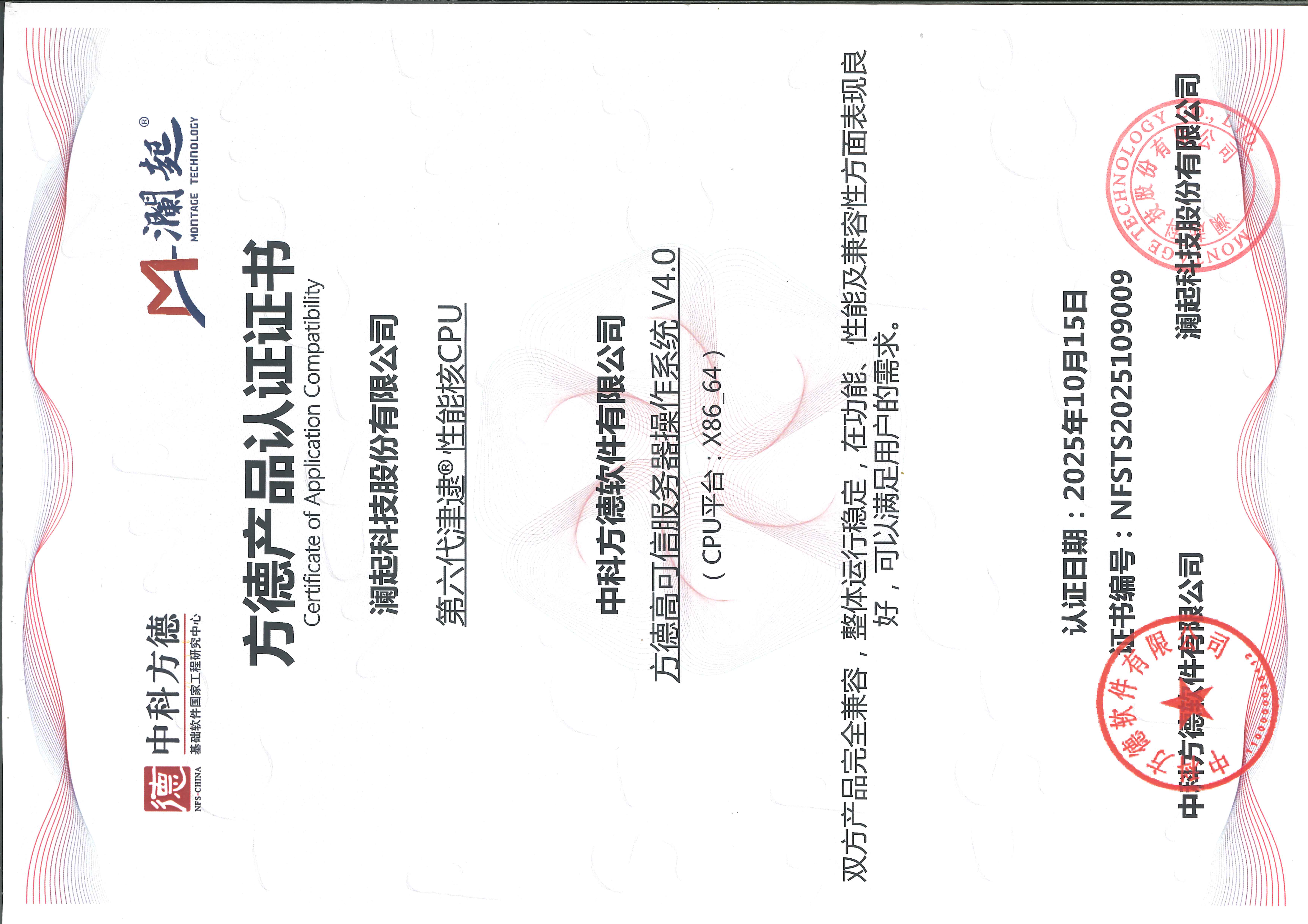 第六代津逮®性能核CPU - 方德高可信服务器操作系统 V4.0